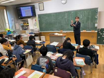 国語の時間です。「これがわたしのお気に入り」紹介文の組み立てを確認しています。
