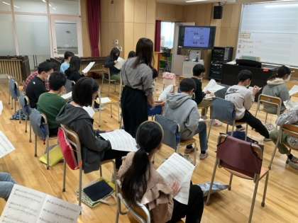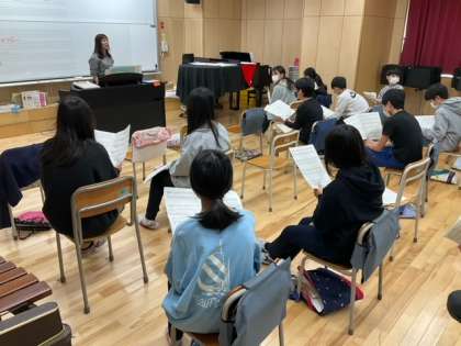 音楽の時間です。卒業シーズンに向けて、大切な曲の練習に取り組んでいます。