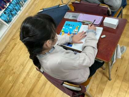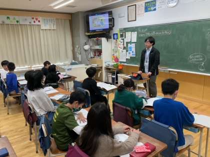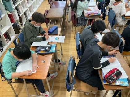 算数の時間です。立体の学習が進んでいます。平面や空間の位置のあらわし方を考えています。