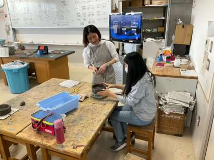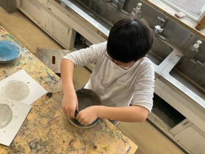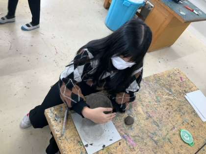 図工の時間です。陶芸に挑戦しています。卒業のよい記念になりそうですね。