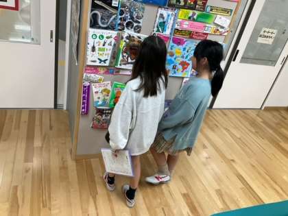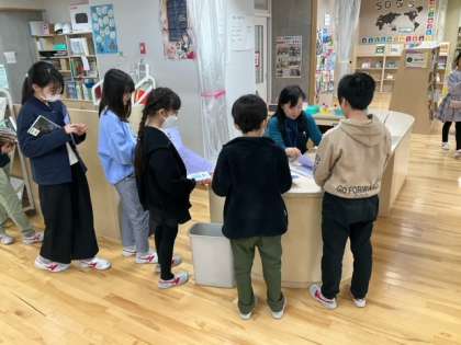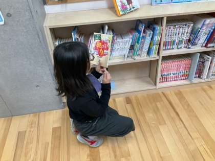 読書の時間です。図書室の2月の本の展示は「SDGs」、テーマは「つくる責任」「つかう責任」です。