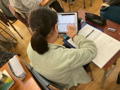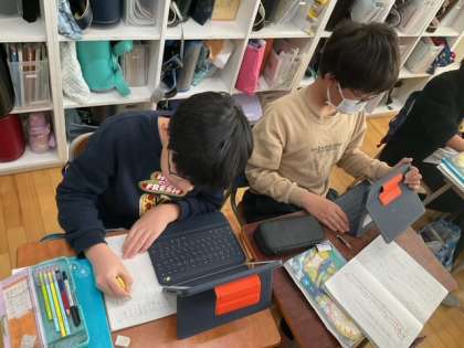 国語の時間です。「大造じいさんとガン」物語を深く読み込むために、意味調べをていねいに行っています。
