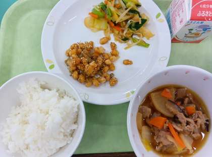 ご飯 豚肉と大根のうま煮 小松菜のおひたし 大根とじゃこの甘辛揚げ