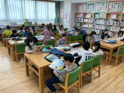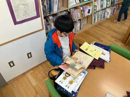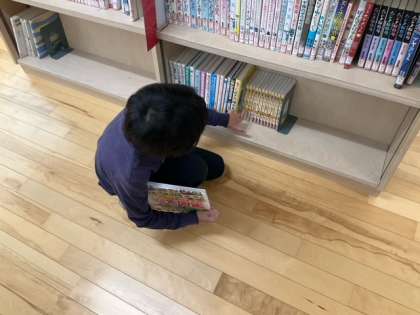 読書の時間です。みんな、読みたい本がたくさんあるんだね。どんどん読もう!