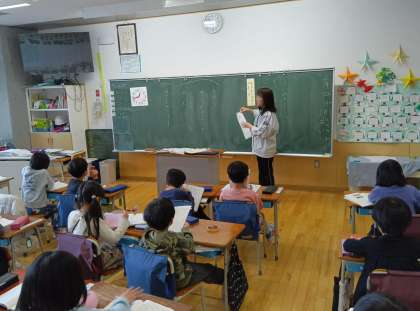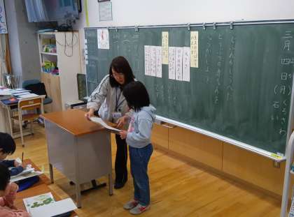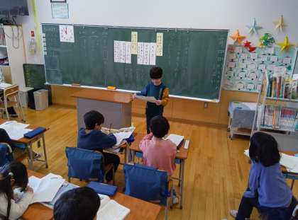 国語の時間です。自分が調べた動物の赤ちゃんを紹介しました。生まれたばかりの様子や大きくなっていく様子を紹介しました。