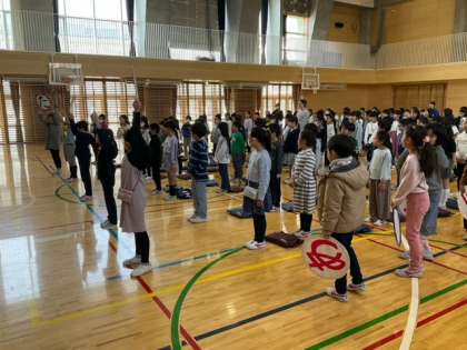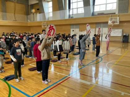 学年練習の時間です。6年生を送る会に向けて、呼びかけの練習をしています。感謝の気持ちは、きっと6年生に届きますね。