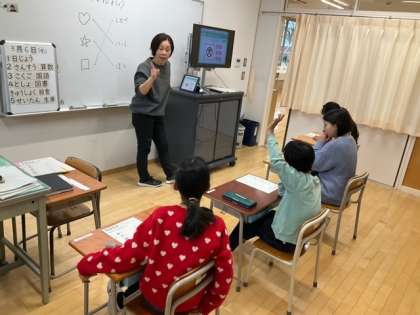 グループ学習の時間です。4年生は、地図記号の学習をしています。「この記号をわかる人?」
