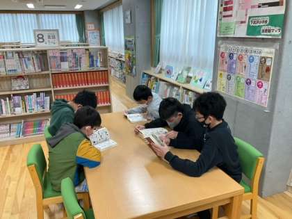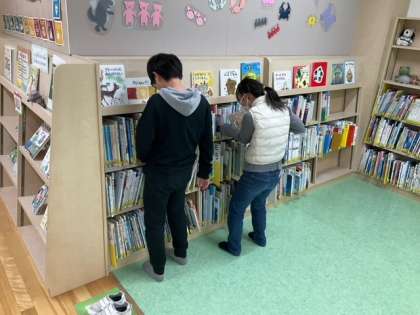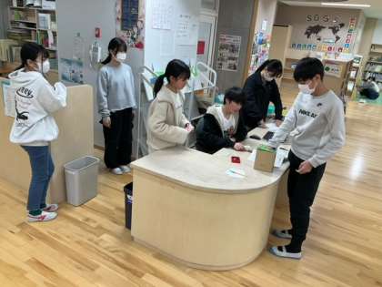 図書室開放をしています。本を借りると、図書委員が作った「くじ」を引くことができます。当たると「しおり」のプレゼントがあります。