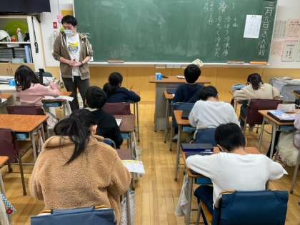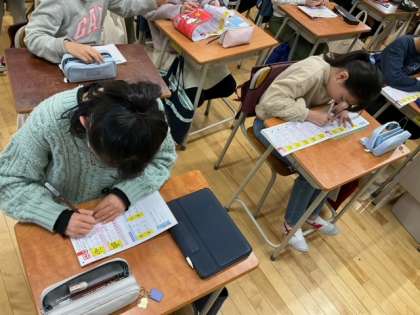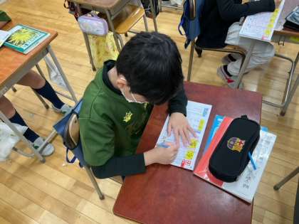 国語の時間です。デジタルが進んだ時代においても、ていねいに文字を書く習慣はとても大事です。