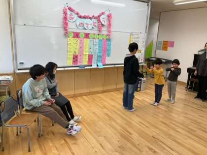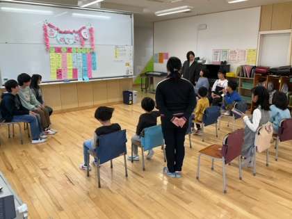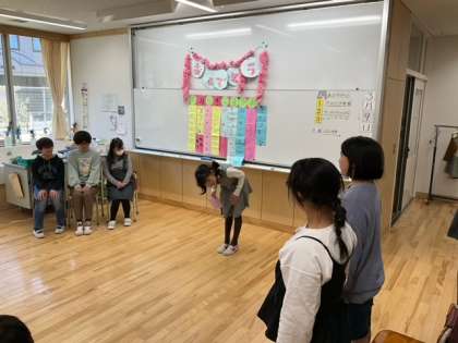 学級活動の時間です。3時間目に「6年生の卒業をお祝いする会」を開きます。リハーサルの風景です。