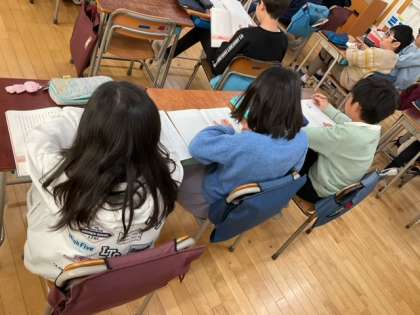 国語の時間です。「初雪のふる日」テンポよく場面が移り変わっていくお話です。楽しく読みましょう。