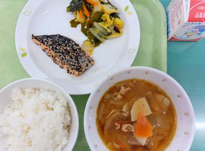 給食献立 3月11日 公開日 2024/03/11 更新日 2024/03/11 できごと 献立 ご飯 鮭の南部焼き わかめ入りおひたし 仙台芋汁 給食産地 米 岩手県 鮭 三陸産 豚肉 青森県 里芋 愛媛県 いいね(0)