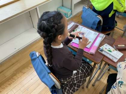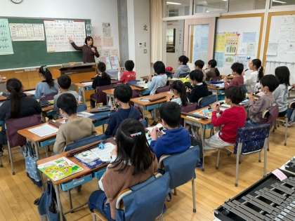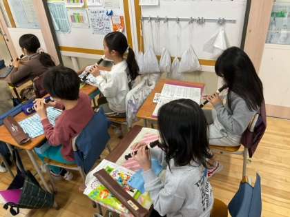 音楽の時間です。「走れ シベリア鉄道」リコーダーが本当に上手になりました。子どもたちの成長は素晴らしいです。