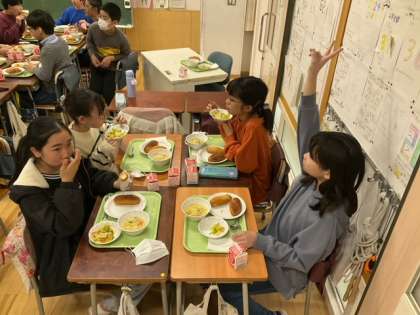 今日は、6年生からのリクエスト給食です。リクエストは、揚げパン。6年生だけは、2色揚げパン(ココアときなこ)で、教室は大盛り上がりでした。