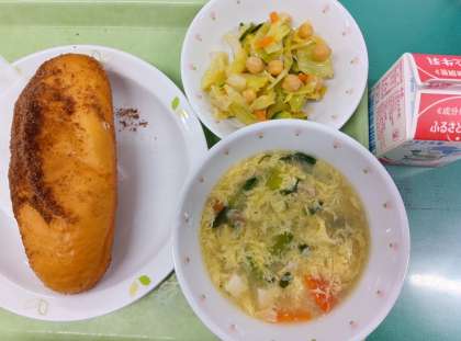 ココア揚げパン 洋風卵スープ ひよこ豆入りゆで野菜