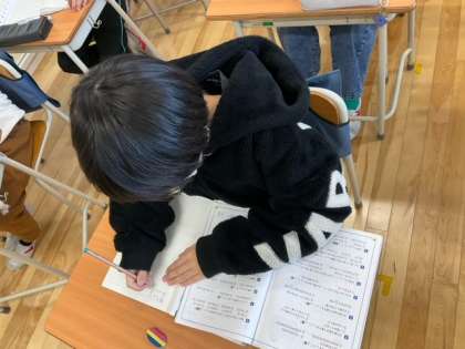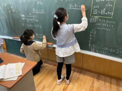 算数の時間です。「4年のまとめ」をしています。計算も図形も確実に復習しましょう。