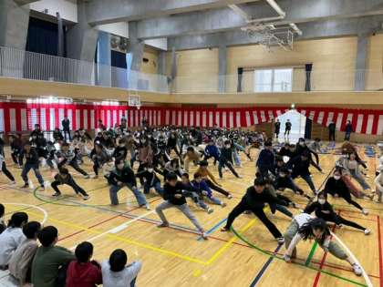 5年生からのプレゼントは、思い出のワンシーンです。5年生全員で全力ソーラン節を披露しました。
