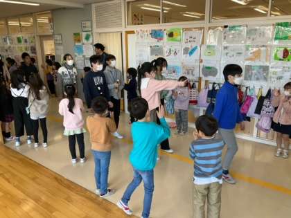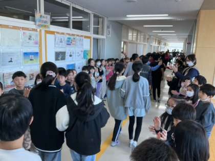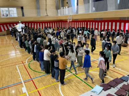 全校児童による送り出しです。拍手と歓声で、6年生を送り出しました。