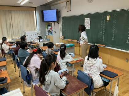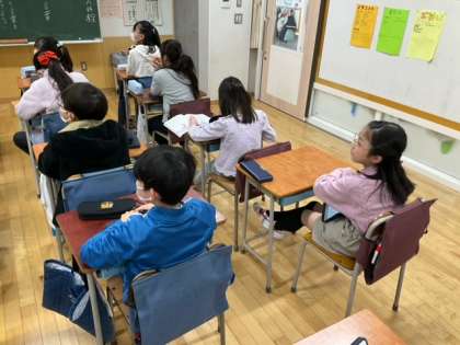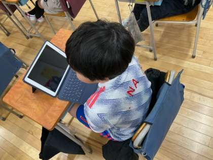 国語の時間です。「今、自分の心に響く言葉」をクラスのみんなに届けています。