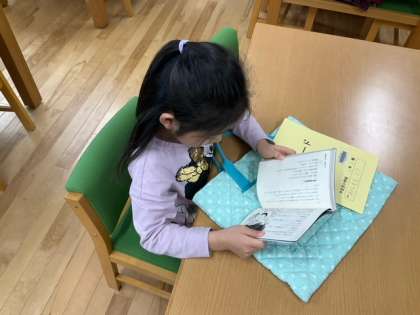 読書の時間です。読書の幅が広がった1年間でしたね。3年生でもたくさん本を読みましょう。