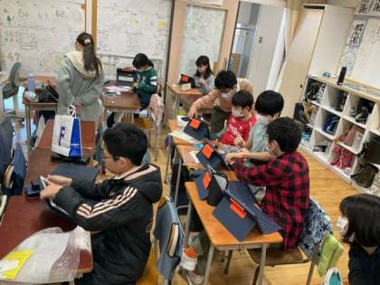 学級活動の時間です。慣れ親しんだiPadとも、ついにお別れです。