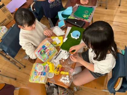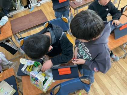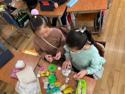 理科の時間です。「じしゃくで動くおもちゃ」作成中です。