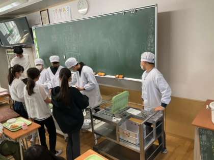 今日も、6年生のリクエスト給食「カレーライス」です。小学校で食べる給食は、明日で最後ですね。明日は、「卒業・進級お祝い献立」です。
