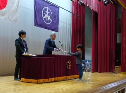 修了式を行いました。各学級の代表児童が修了証を校長先生から受け取りました。どの児童も堂々としていて、来年度の活躍が楽しみになりました。