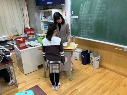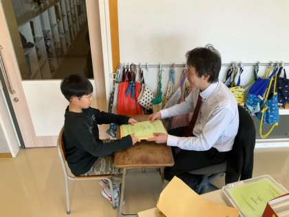 担任の先生から、励ましの言葉とともに通知表が手渡されました。