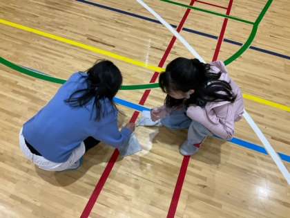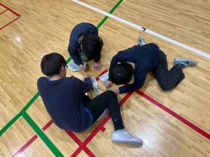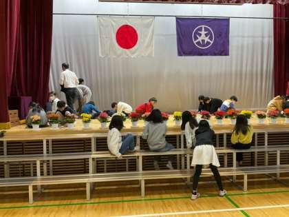 5年生のみなさんが、卒業式の会場を整えています。気持ちよく働く子どもたちです。