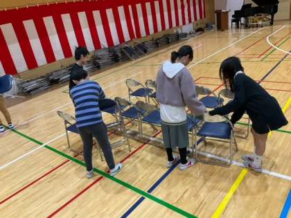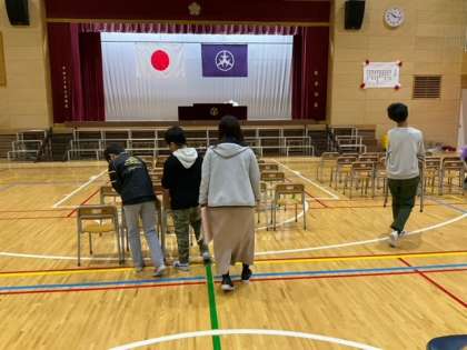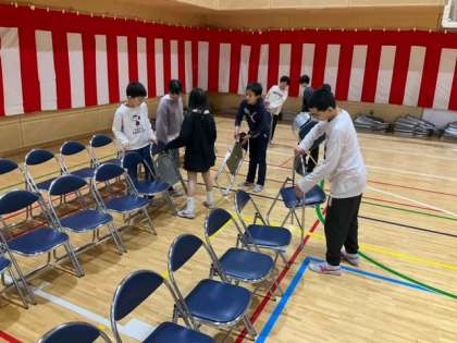 入学式の式場準備を進めています。気持ちよく動いてくれる6年生です。