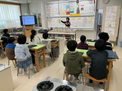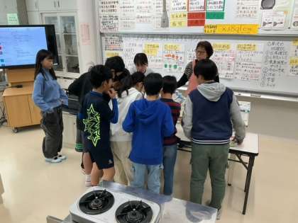 家庭科の時間です。さっそく調理実習が始まります。楽しみですね。