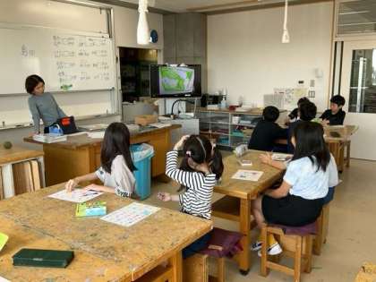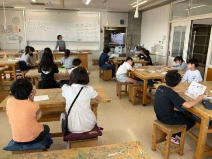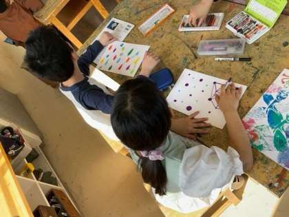 図工の時間です。「クレヨンあそび」さまざまな技法を学習していきます。