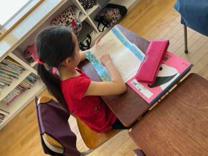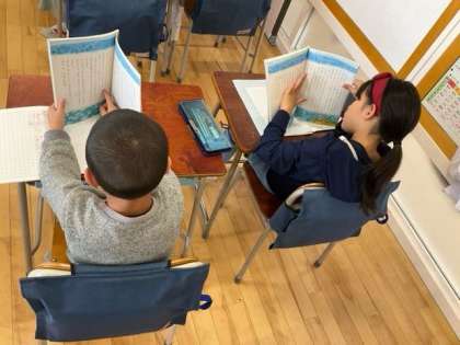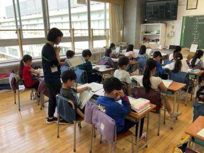 国語の時間です。「春風をたどって」春風って、どんなイメージかな? 想像しながら読み進めましょう。