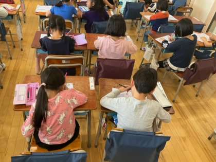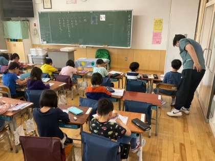 国語の時間です。ひらがなの学習が進んでいます。「い」のつく言葉をたくさん見つけました。