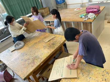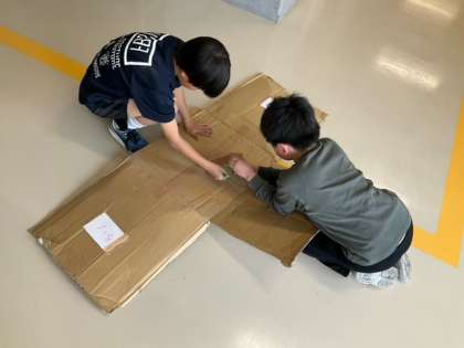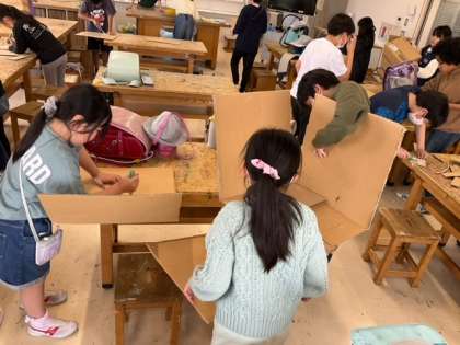 ものづくり・手芸クラブの活動風景です。ダンボールを使って、何を作るのかな?
