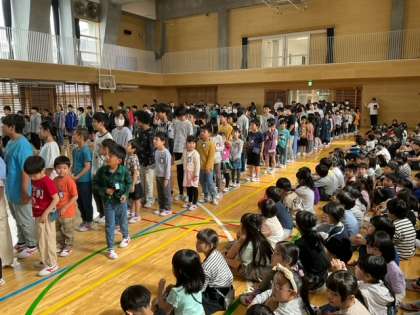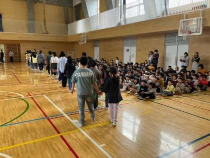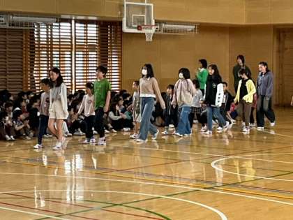 105名の新入生を迎えました。6年生と手を繋いで入場しました。