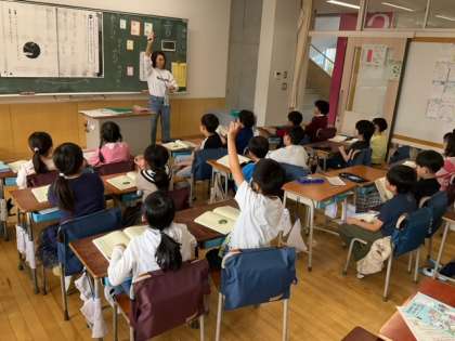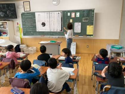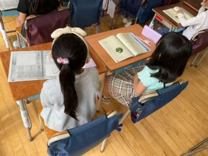 日本語の時間です。俳句の学習をしています。日本語の響きやリズムを感じながら読んでいます。