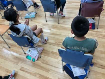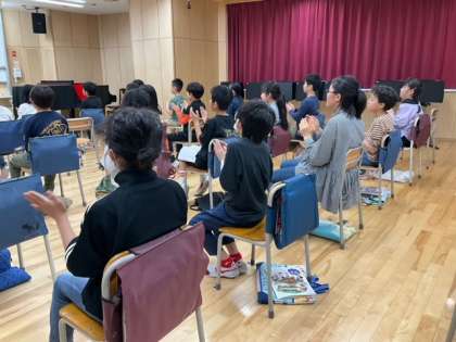 音楽の時間です。「リズム打ち」に挑戦しています。少しずつリズムが難しくなっていきます。みんなで揃えることができるでしょうか?