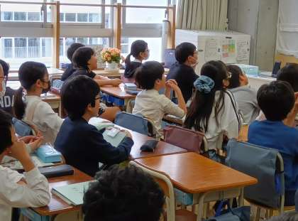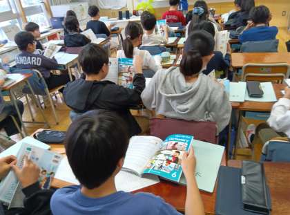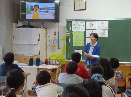外国語の時間です。得意なことを英語で言えるように練習しました。発音やアクセントに気をつけて話していました。
