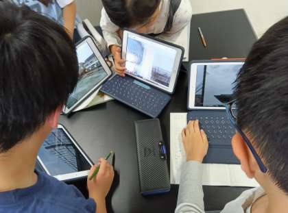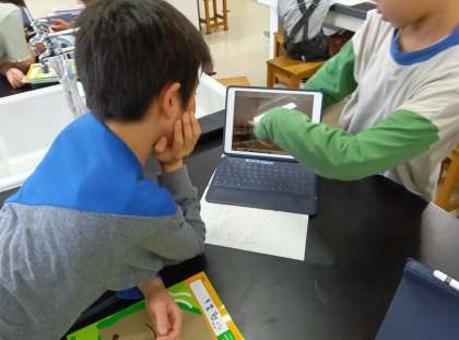 理科の時間です。観察した雲の様子をもとに一日の天気がどのように変化するか話し合いました。