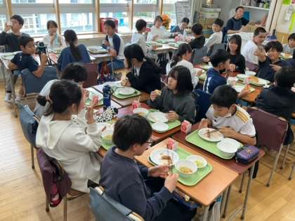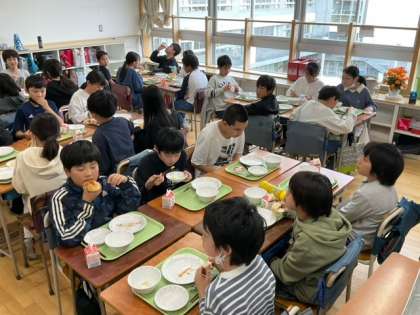 新年度になり、1年生のお世話をはじめ、意欲的に活動している6年生の給食風景です。いつもありがとう!