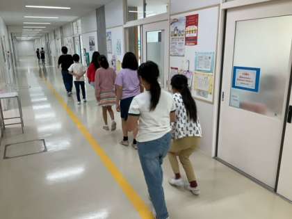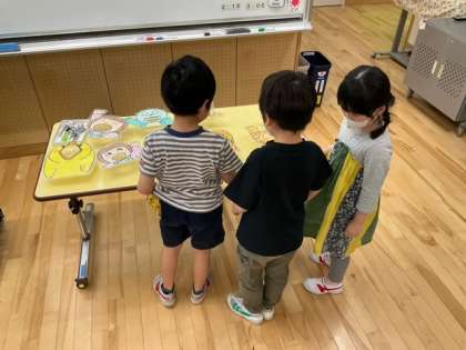 生活単元の時間です。1、2、3年生は、スプーンマイスターに挑戦します。高学年は、学校探検に出かけました。