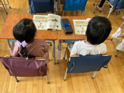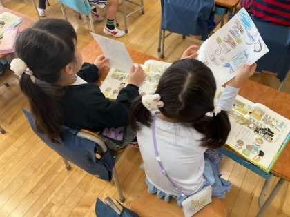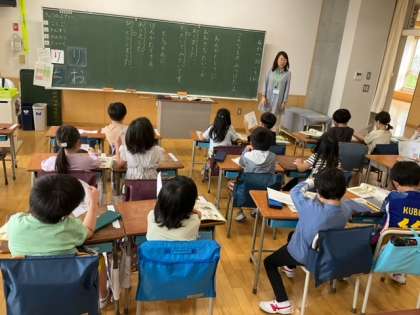 国語の時間です。「こんな もの みつけたよ」学校探検をして、いろいろなものを見つけましたね。友達に教えてあげましょう!