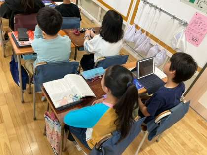 国語の時間です。「銀色の裏地」意見の交流を数多く行っています。思考の広がりや深まりにつながっています。