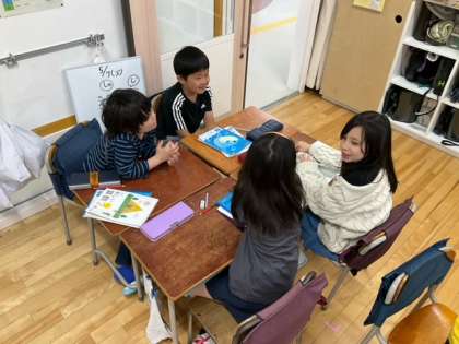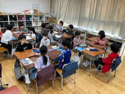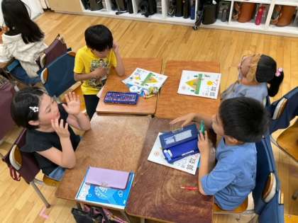 算数の時間です。グループで、答えが○になる「計算ゲーム」に取り組んでいます。