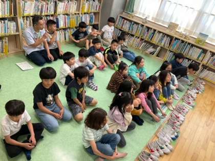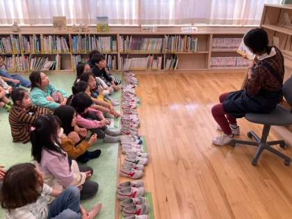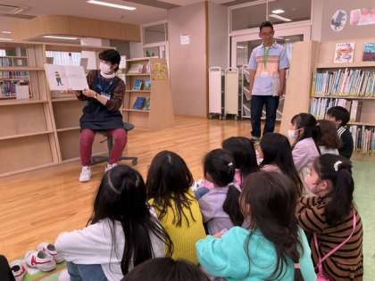 読書の時間です。司書の先生がしてくれる読み聞かせは、子どもたちが大好きな時間です。