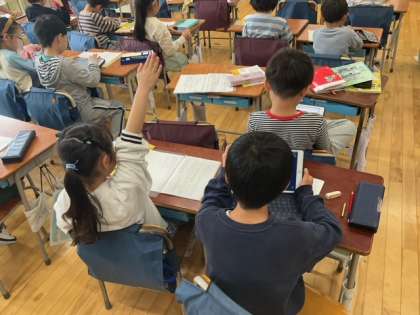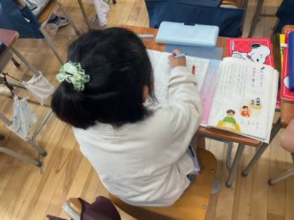 国語の時間です。「日記に 書こう」昨日はどんなことをしたかな? 思い出して日記に書いてみましょう。