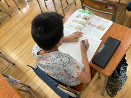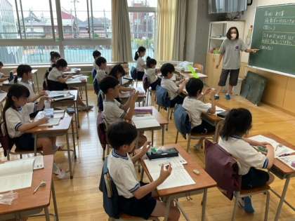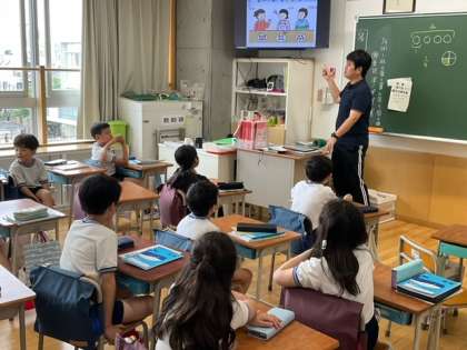 算数の時間です。「どのように分けているのかな?」同じ数ずつ分けるときの方法を考えています。