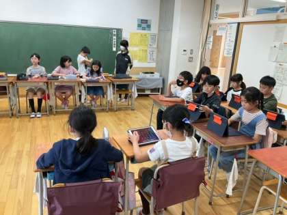 学級会の時間です。学級目標について話し合いを進めています。自分たちの力で、クラスをより良くしていきましょう。